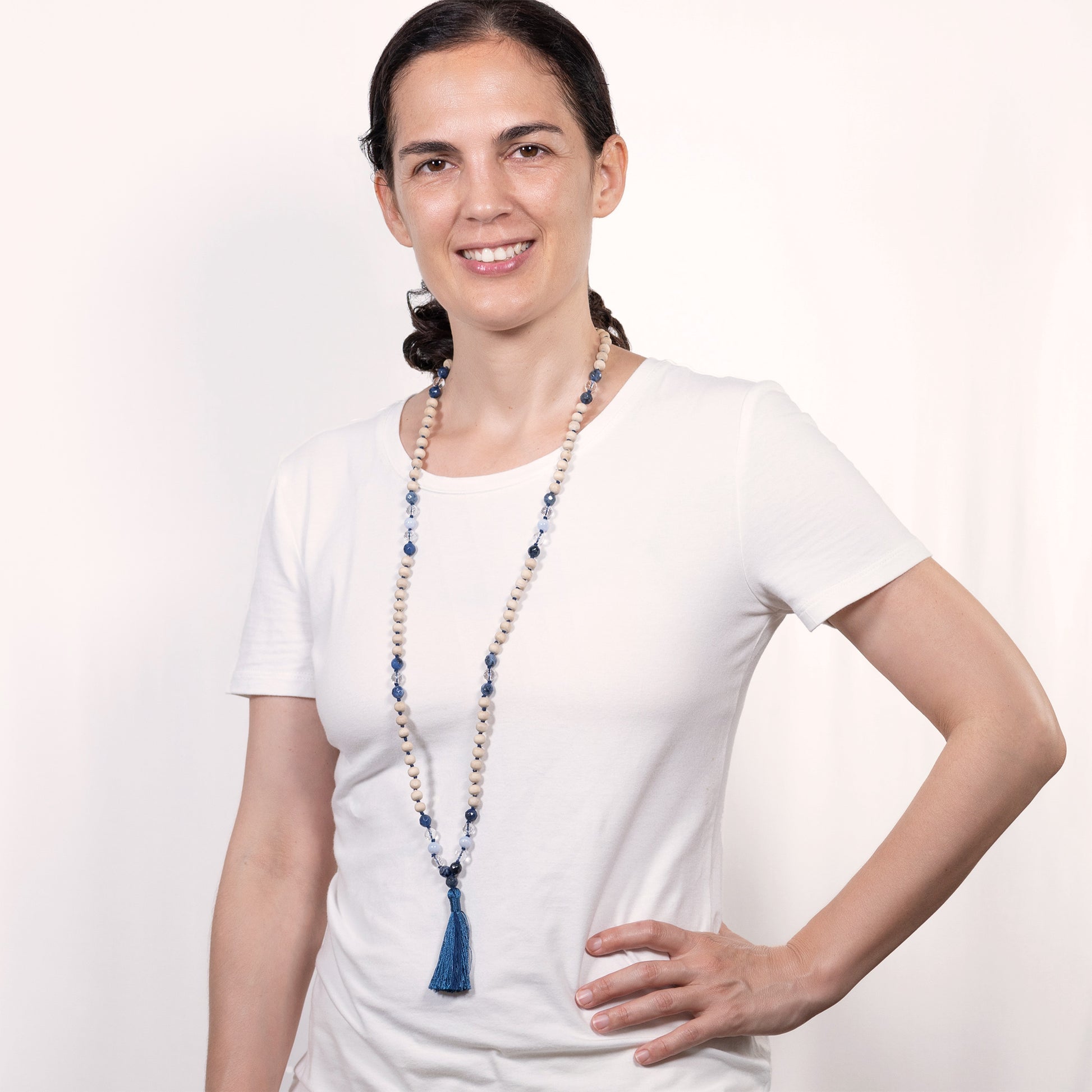 The tulsi (holy basil) plant with green leaves is called ‘Shri’, which means ‘the fortunate one’ and is another name for the goddess Lakshmi. The natural, unpolished tulsi beads in our stunning 108-bead Shri Tulsi & Gems Tassel Mala are made directly from tulsi plant wood. The tulsi beads are featured with a gorgeous, hand-knotted arrangement of healing gemstones (listed by color name) and a vibrant silk tassel. The lightness of the tulsi beads makes this mala necklace easy to carry and use for mantra and meditation practices.