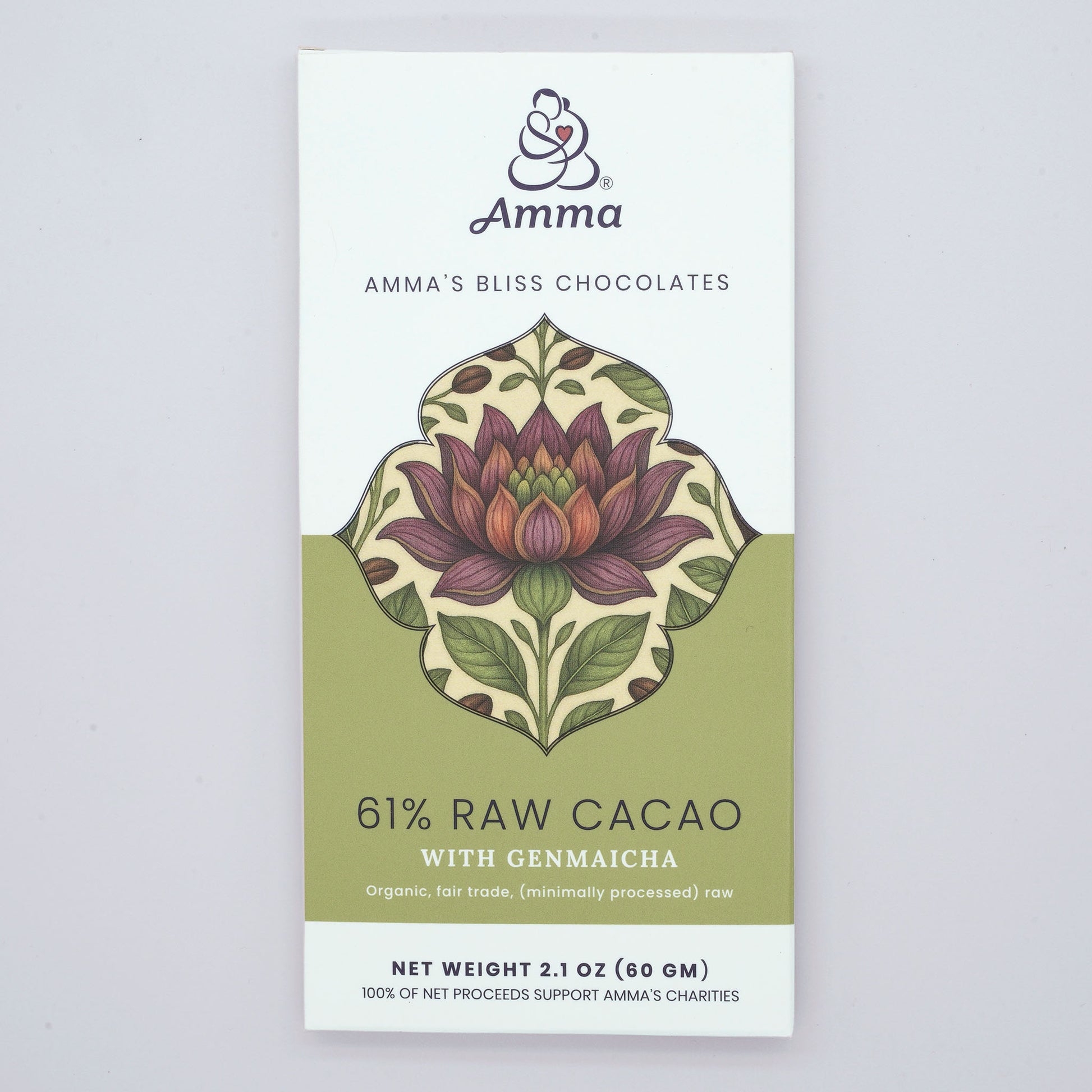 Ingredients: Cacao beans, Coconut sugar, Cacao butter, Genmaicha powder (matcha & toasted brown rice), Sesame seeds, Puffed rice, Vanilla extract, Sea salt