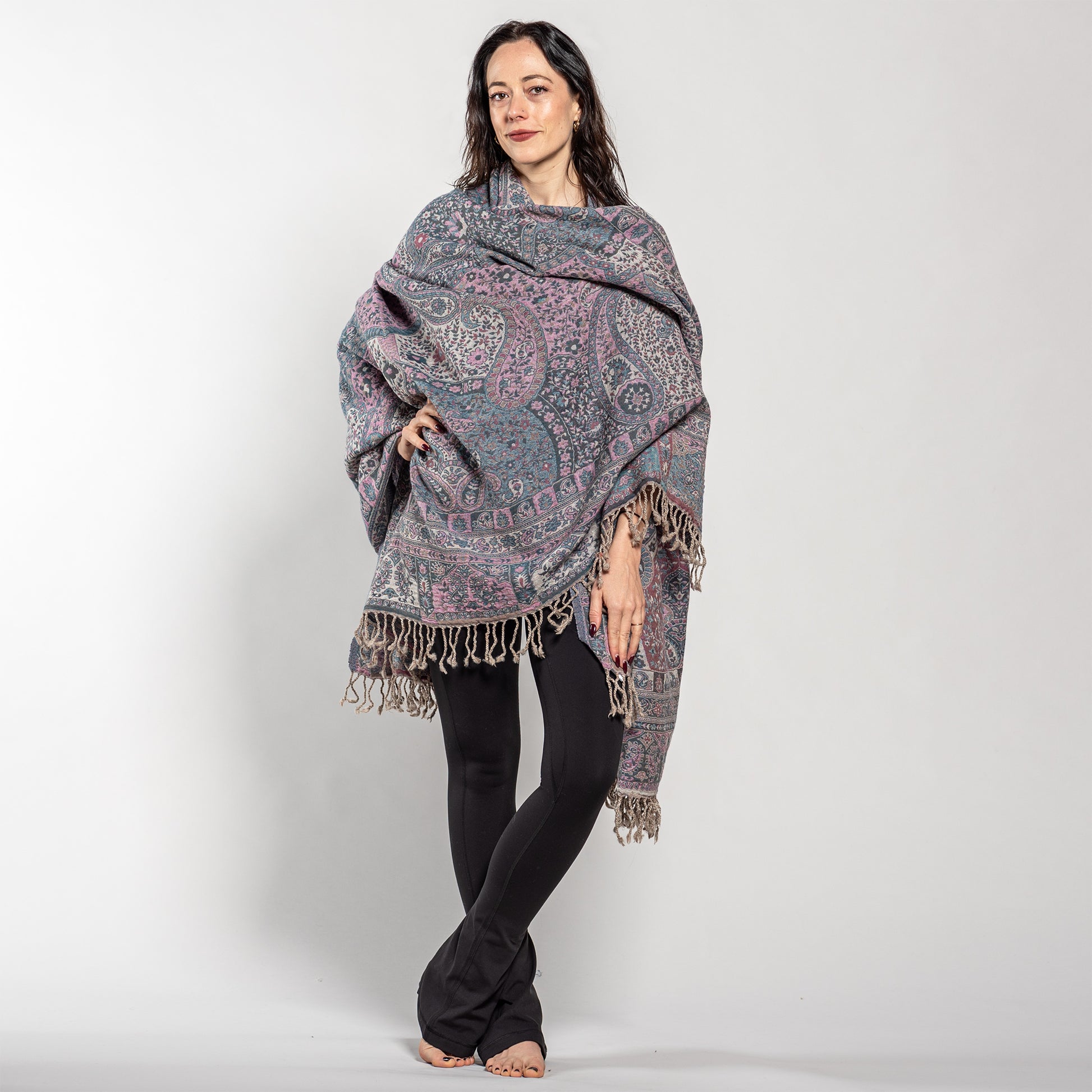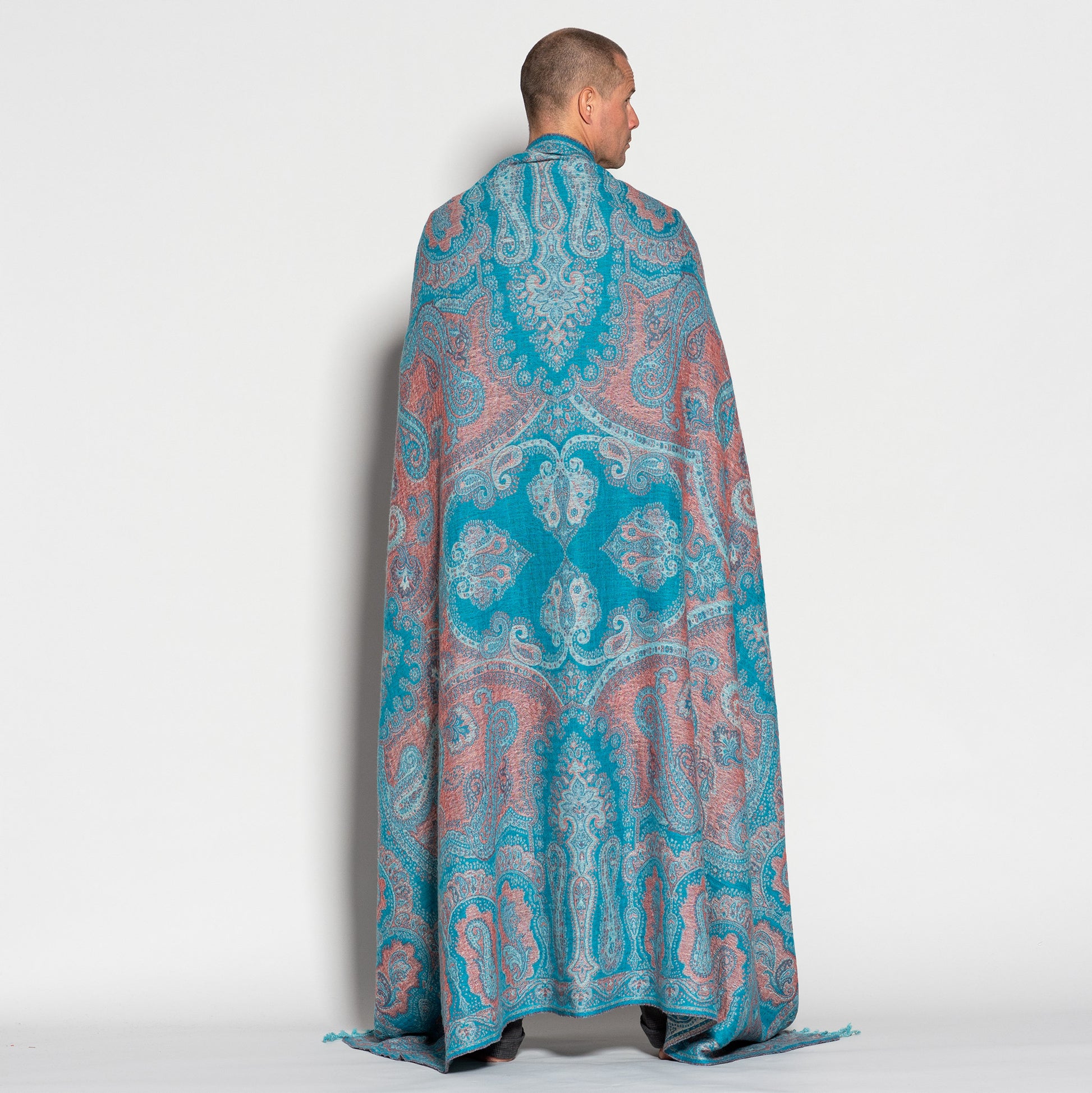 One of the softest, most luxuriously warm and enchanting shawls you'll find. A joy to get cozy in, our handwoven Jamawar Wool Reversible Shawl - Blanket is handcrafted from pure, natural, boiled wool. Breathable, wind-resistant, and amazingly lightweight, the shawl’s gentle softness shrugs off the scratchiness often found in other types of wool clothing. And because boiled wool creates a more dense fabric, the shawl also provides exceptional strength and durability, making your Jamawar investment an especially wise choice.